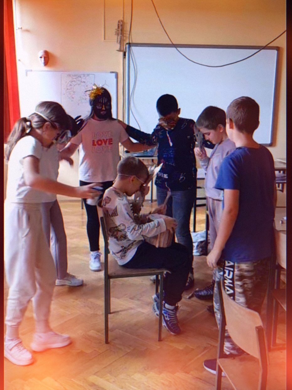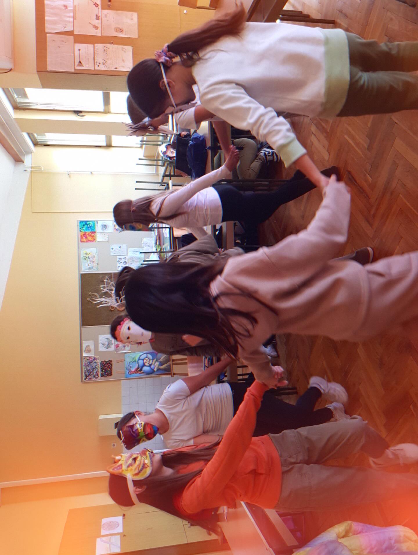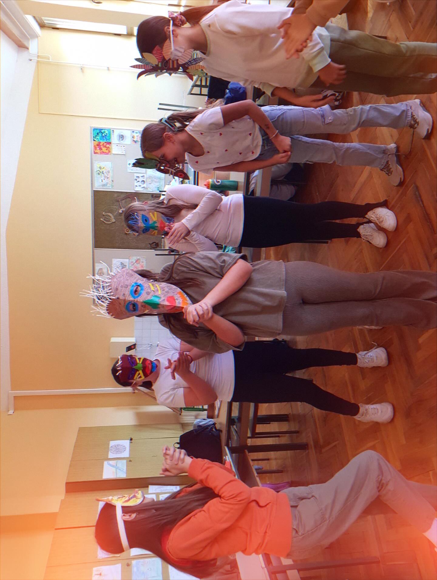 У оквиру области Човек и музика ученици петог разреда су учили о музици и њеној примени у праисторији. Као део ритуала и обреда музика је служила, између осталог, за призивање кише, одлазак у лов или у борбу. Ученици су на свој начин дочарали употребу ритма и мелодије са својим маскама у праисторији. Лидија Санковић Лаћарац, наставница музичке културе.
