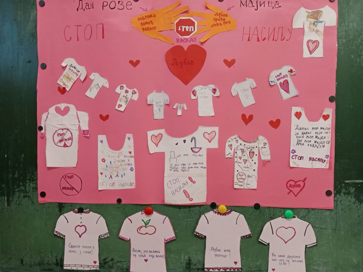 Дан розе мајица је познат и као Међународни дан превенције вршњачког насиља и обележава се сваке последње среде у фебруару. Ове године је то управо данас - 25. 2. 2026. Ученици VI/1 су кроз разговор и писање порука обележили овај датум.