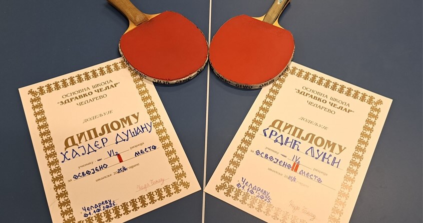 Free Joomla Lightbox GalleryОпштинско првенство у стоном тенису одржано је у Челареву 2. октобра 2025. године. У екипној конкуренцији дечаци (Душан Хајдер и Лука Срдић) су заузели друго место, а девојчице (Ања Ступар, Софија Пазман и Сташа Балабан) су освојиле прво место. У појединачној конкуренцији Душан Хајдер освојио је прво место, док је Ања Ступар била прва, а Софија Пазман друга.